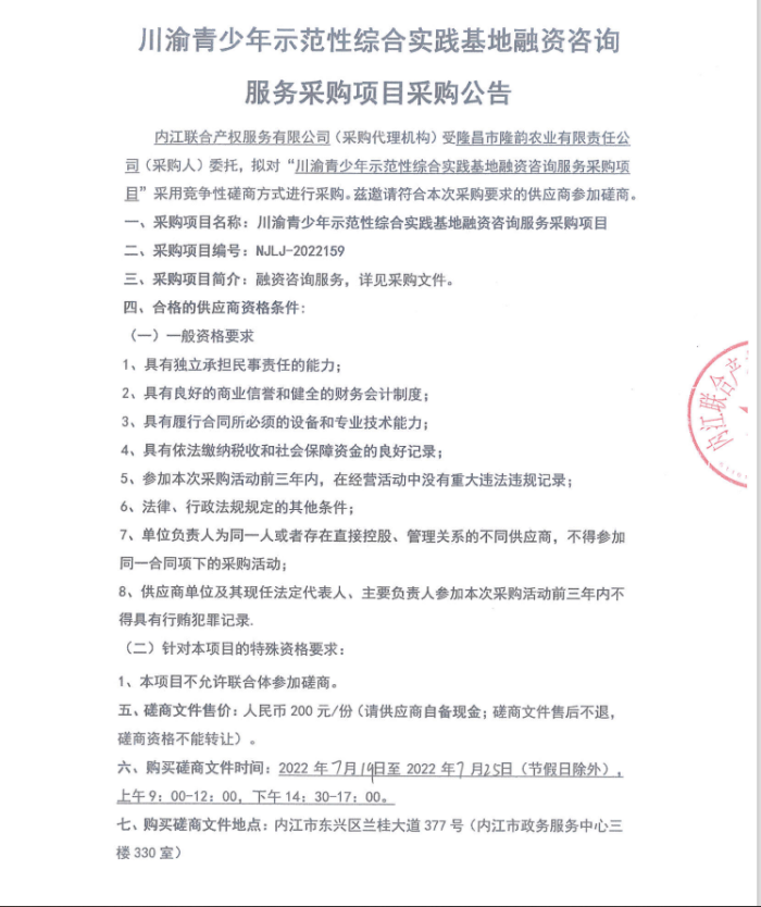 川渝青少年示范性綜合實踐基地融資咨詢服務(wù)采購項目采購公告
