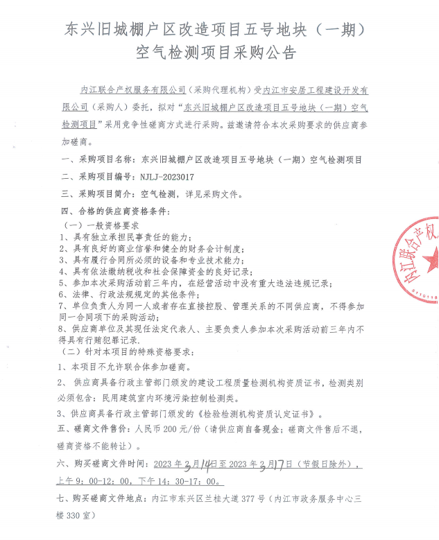 東興舊城棚戶區(qū)改造項目五號地塊(一期)空氣檢測項目采購公告