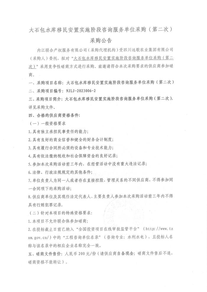 大石包水庫移民安置實(shí)施階段咨詢服務(wù)單位采購公告(第二次)