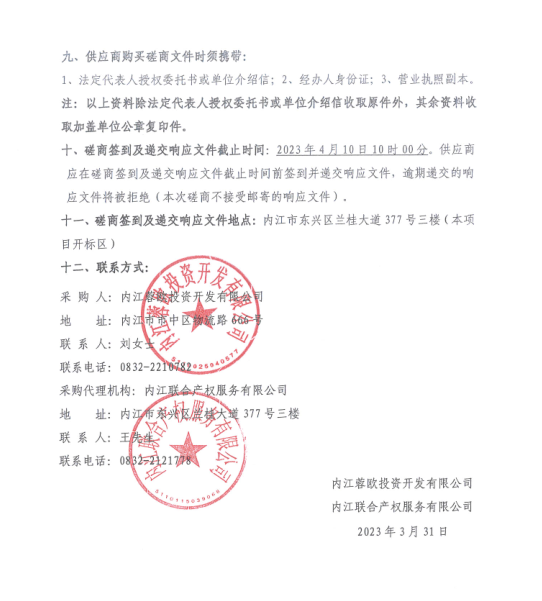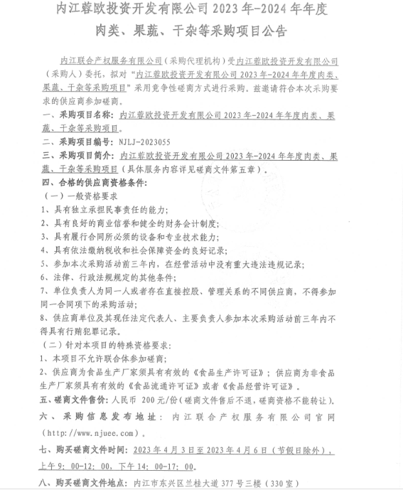 內(nèi)江蓉歐投資開發(fā)有限公司2023年-2024年年度肉類、果蔬、干雜等采購(gòu)項(xiàng)目公告