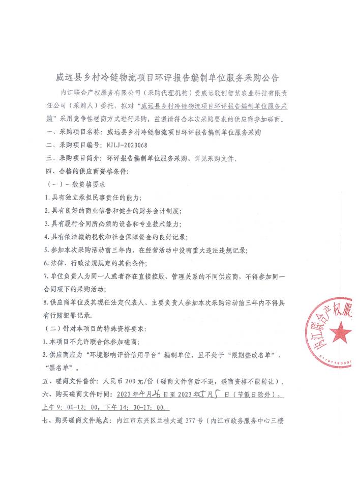 威遠(yuǎn)縣鄉(xiāng)村冷鏈物流項(xiàng)目環(huán)評(píng)報(bào)告編制單位單位服務(wù)采購公告