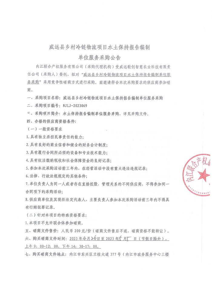 威遠(yuǎn)縣鄉(xiāng)村冷鏈物流項(xiàng)目水土保持報(bào)告編制單位服務(wù)采購公告