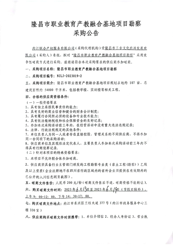 隆昌市職業(yè)教育產(chǎn)教融合基地項目勘察采購公告