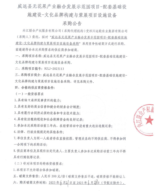 威遠(yuǎn)縣無(wú)花果產(chǎn)業(yè)融合發(fā)展示范園項(xiàng)目-配套基礎(chǔ)設(shè)施建設(shè)-文化品牌構(gòu)建與策展項(xiàng)目設(shè)施設(shè)備采購(gòu)公告