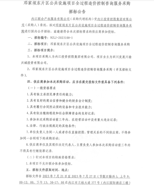鄧家壩東片區(qū)公共設(shè)施項(xiàng)目全過程造價(jià)控制咨詢服務(wù)采購(gòu)招標(biāo)公告