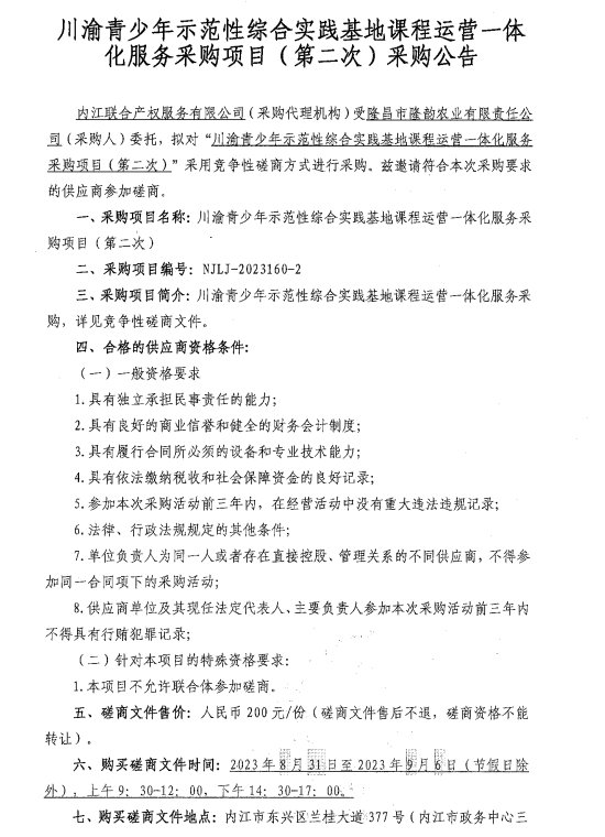 川渝青少年示范性綜合實踐基地課程運營一體化服務(wù)采購項目(第二次)采購公告