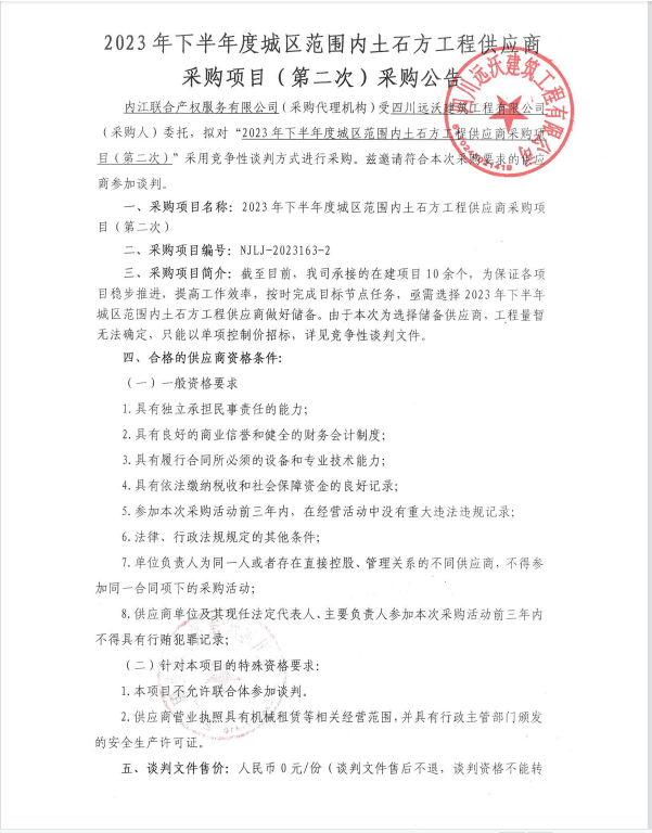 2023年下半年度城區(qū)范圍內(nèi)土石方工程供應(yīng)商采購項(xiàng)目(第二次)采購公告