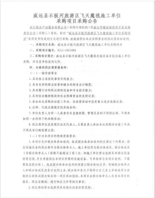 威遠縣石板河旅游區(qū)飛天魔毯施工單位采購項目