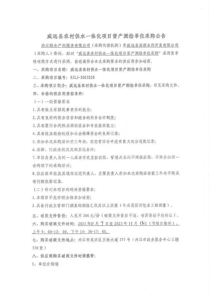 威遠(yuǎn)縣農(nóng)村供水一體化項目資產(chǎn)測繪單位采購公告