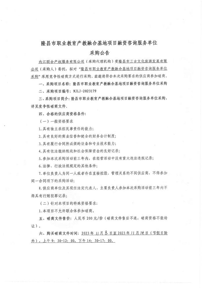 隆昌市職業(yè)教育產(chǎn)教融合基地項目融資咨詢服務單位采購公告