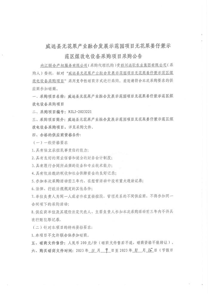 威遠(yuǎn)縣無花果產(chǎn)業(yè)融合發(fā)展示范園項(xiàng)目無花果姜仔兼示范區(qū)煤改電設(shè)備采購(gòu)項(xiàng)目采購(gòu)公告