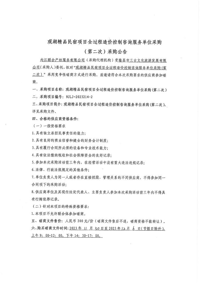 觀湖精品民宿項(xiàng)目全過程造價(jià)控制咨詢服務(wù)單位采購(第二次)采購公告