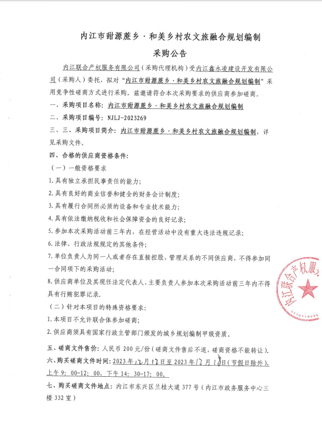 內(nèi)江市甜源蔗鄉(xiāng)·和美鄉(xiāng)村農(nóng)文旅融合規(guī)劃編制采購公告