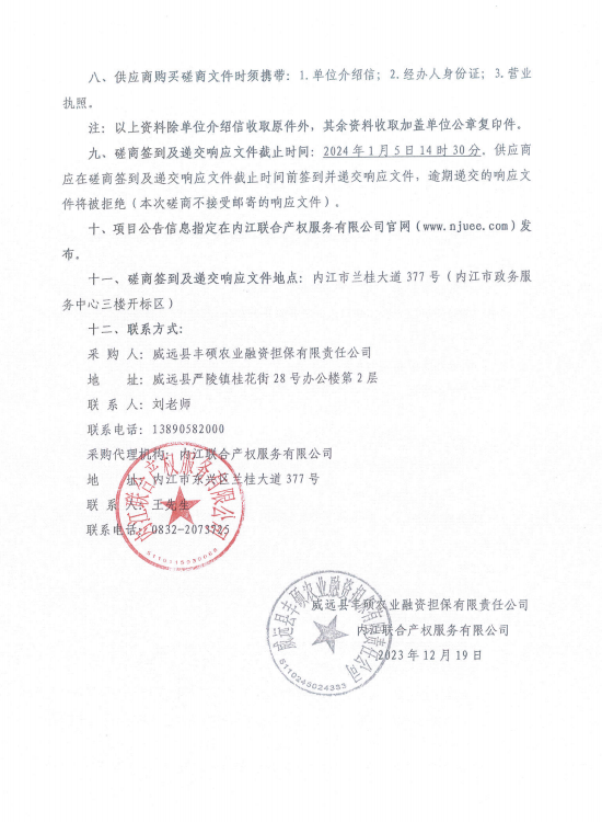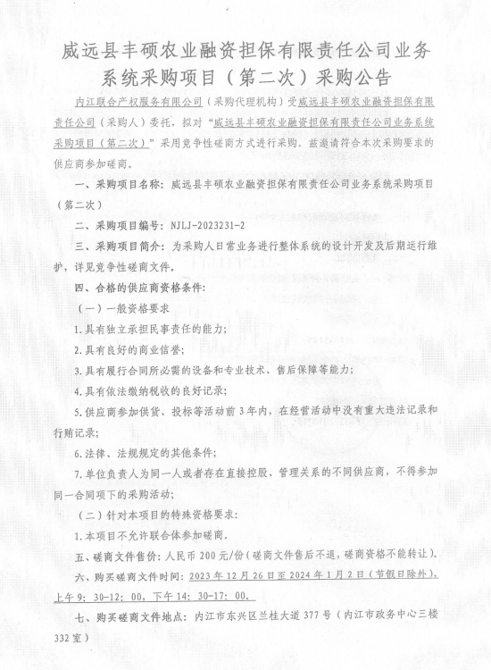 威遠縣豐碩農(nóng)業(yè)融資擔(dān)保有限責(zé)任公司業(yè)務(wù)系統(tǒng)采購項目(第二次)采購公告