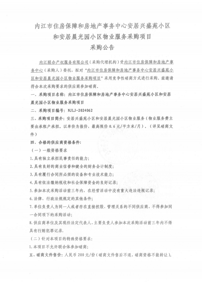 安居興盛苑、安居晨光園保障性住房小區(qū)物業(yè)服務(wù)采購項目采購公告