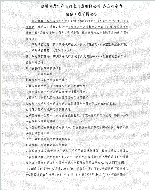 四川頁巖氣產(chǎn)業(yè)技術(shù)開發(fā)有限公司-辦公室室內(nèi)裝修工程采購公告