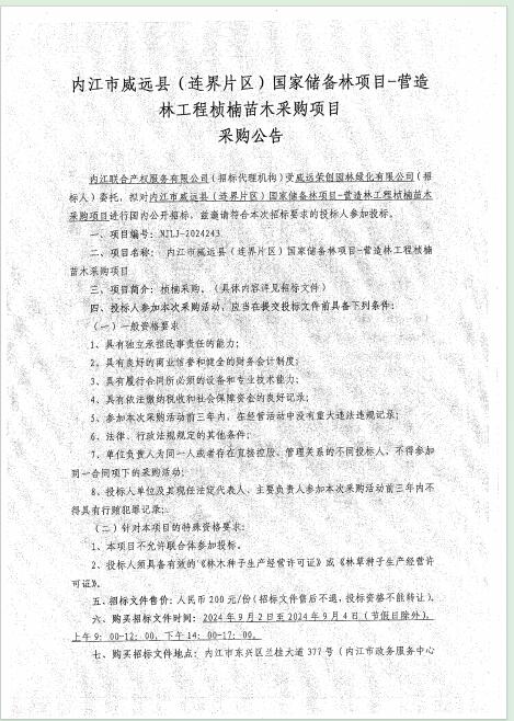 內(nèi)江市威遠(yuǎn)縣(連界片區(qū))國家儲備林項目-營造林工程楨楠苗木采購項目