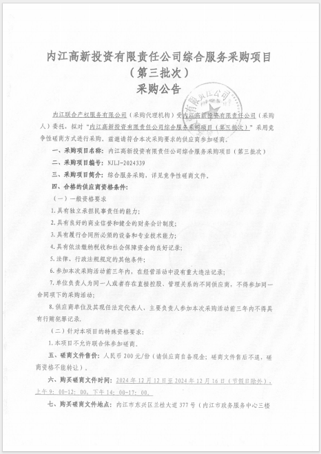 內(nèi)江高新投資有限責任公司綜合服務采購項目(第三批次)