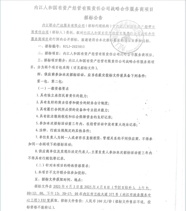 內(nèi)江人和國有資產(chǎn)經(jīng)營有限責(zé)任公司戰(zhàn)略合作服務(wù)商項目招標(biāo)公告