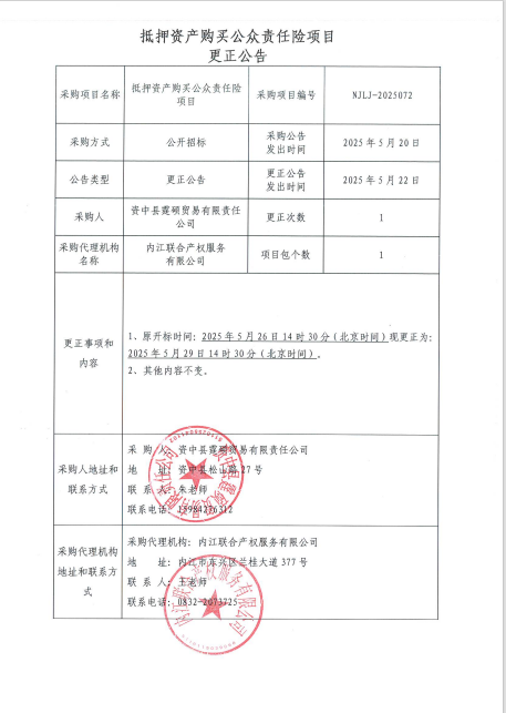 抵押資產(chǎn)購(gòu)買公眾責(zé)任險(xiǎn)項(xiàng)目-更正公告