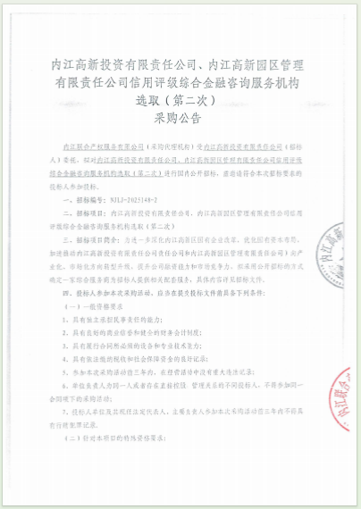 內(nèi)江高新投資有限責(zé)任公司、內(nèi)江高新園區(qū)管理有限責(zé)任公司信用評級綜合金融咨詢服務(wù)機(jī)構(gòu)選?。ǖ诙危┎少徆?/h1>
