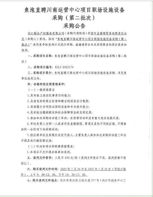 魚泡直聘川南運(yùn)營中心項(xiàng)目職場設(shè)施設(shè)備采購(第二批次)采購公告