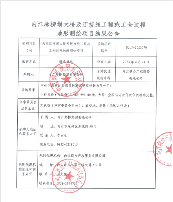 內(nèi)江麻柳壩大橋及連接線工程施工全過程地形測繪項(xiàng)目結(jié)果公告