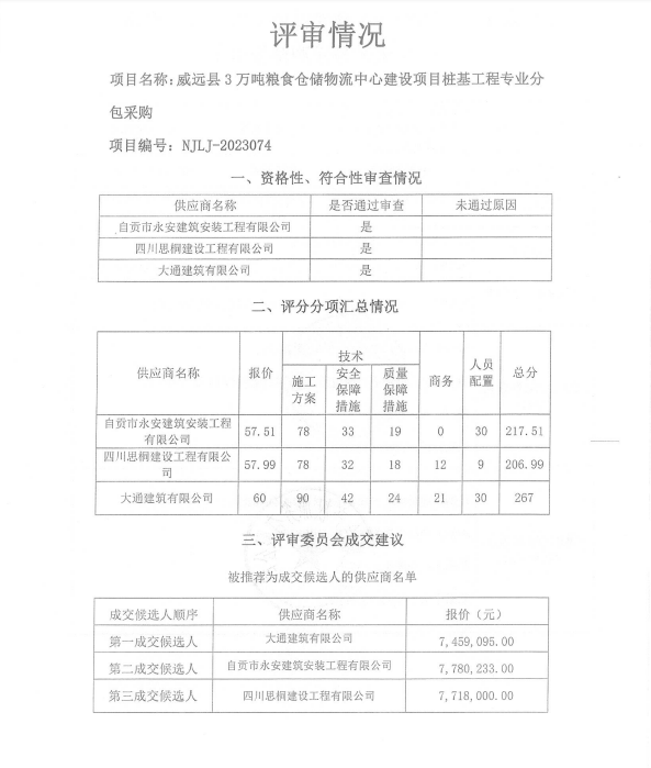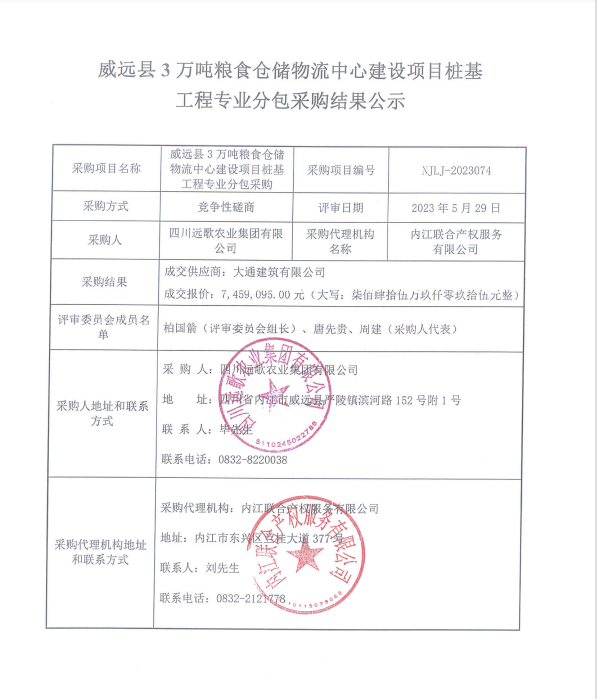 威遠(yuǎn)縣3萬噸糧食倉(cāng)儲(chǔ)物流中心建設(shè)項(xiàng)目樁基工程專業(yè)分包采購(gòu)結(jié)果公示