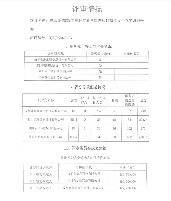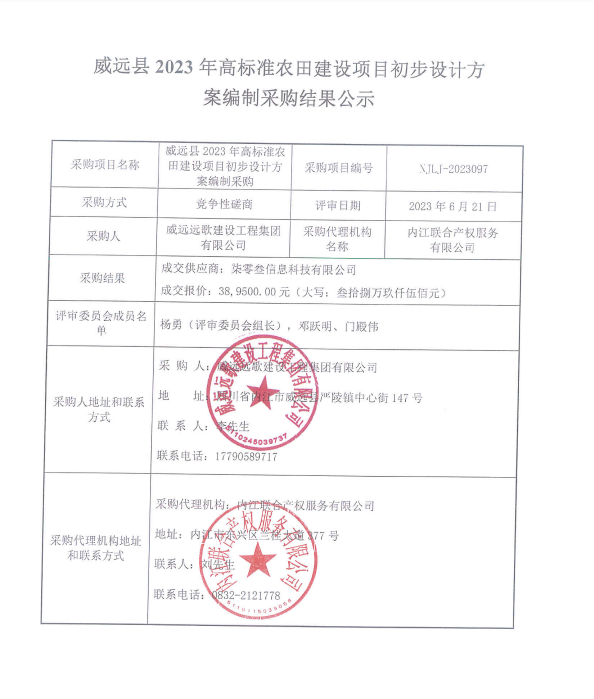 威遠(yuǎn)縣2023年高標(biāo)準(zhǔn)農(nóng)田建設(shè)項(xiàng)目初步設(shè)計(jì)方案編制采購結(jié)果公示