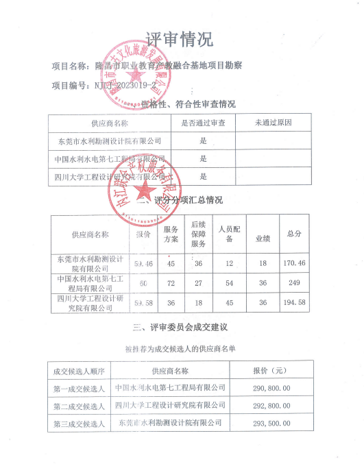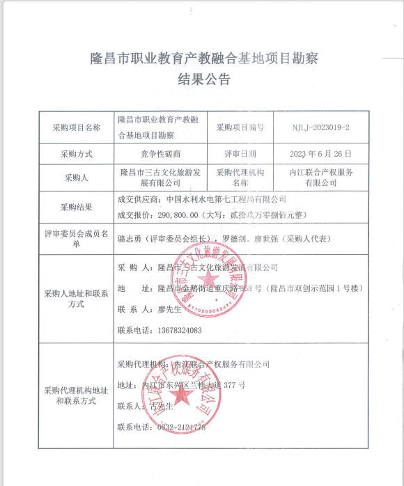 隆昌市職業(yè)教育產教融合基地項目勘察結果公告