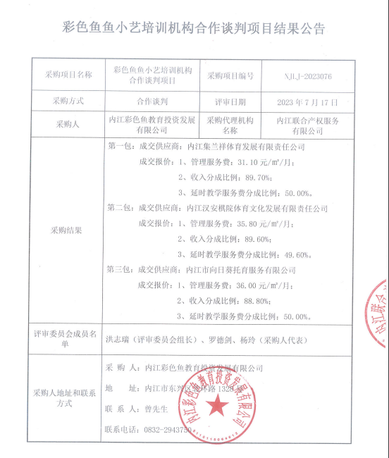 彩色魚魚小藝培訓(xùn)機(jī)構(gòu)合作談判項(xiàng)目結(jié)果公告