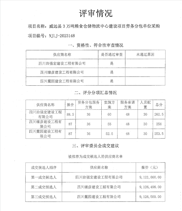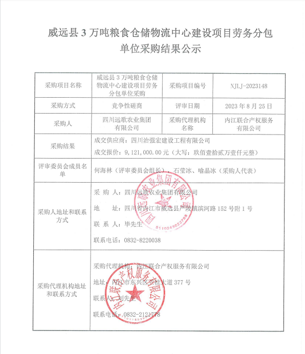 威遠(yuǎn)縣3萬噸糧食倉儲(chǔ)物流中心建設(shè)項(xiàng)目勞務(wù)分包單位采購結(jié)果公示