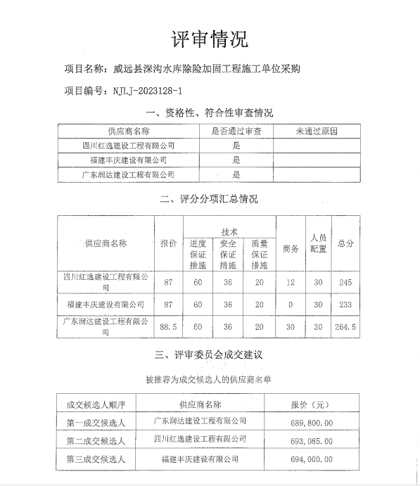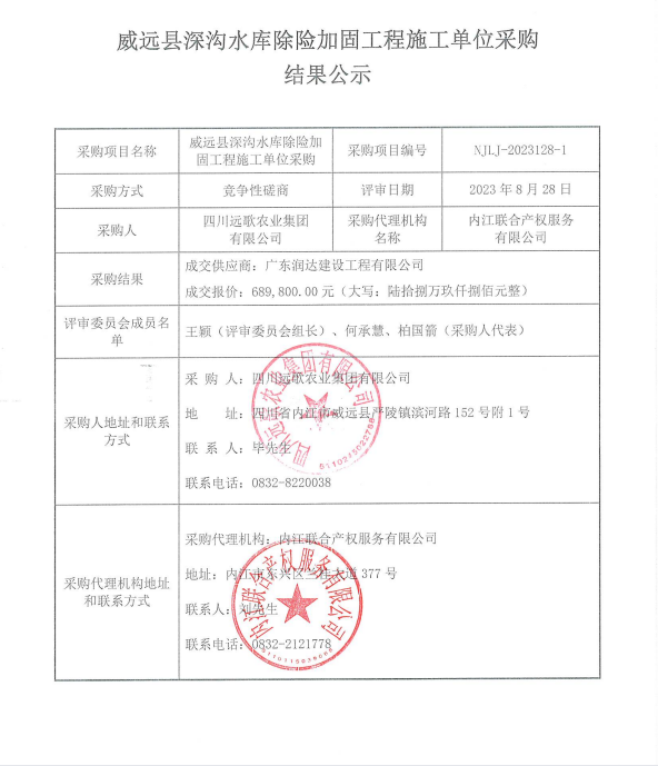 威遠(yuǎn)縣深溝水庫(kù)除險(xiǎn)加固工程施工單位采購(gòu)結(jié)果公示