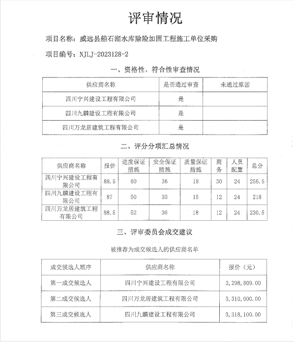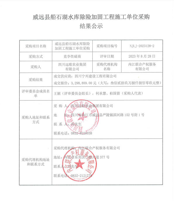 威遠縣船石湖水庫除險加固工程施工單位采購結(jié)果公示