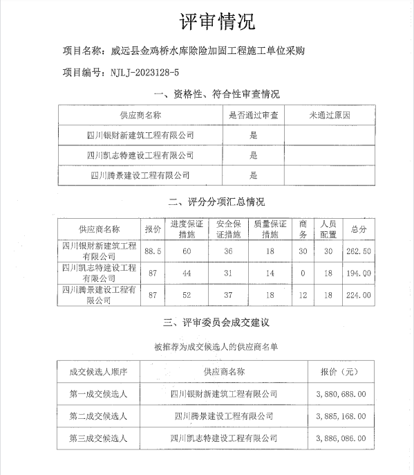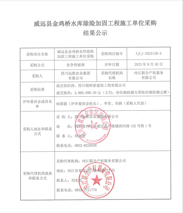 威遠(yuǎn)縣金雞橋水庫除險加固工程施工單位采購結(jié)果公示