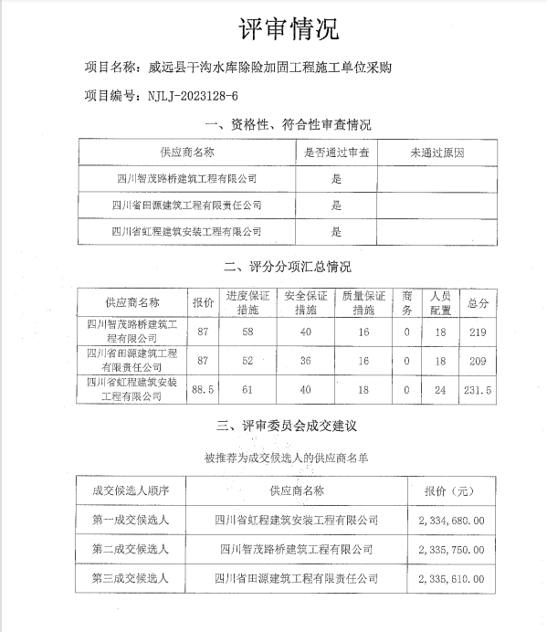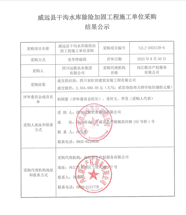 威遠(yuǎn)縣干溝水庫(kù)除險(xiǎn)加固工程施工單位采購(gòu)結(jié)果公示