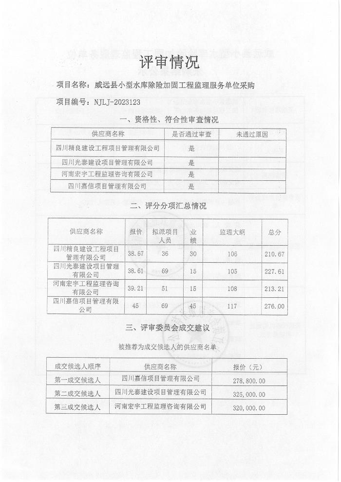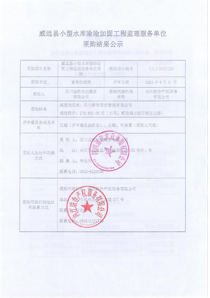 威遠縣小型水庫除險加固工程監(jiān)理服務單位采購結果公示