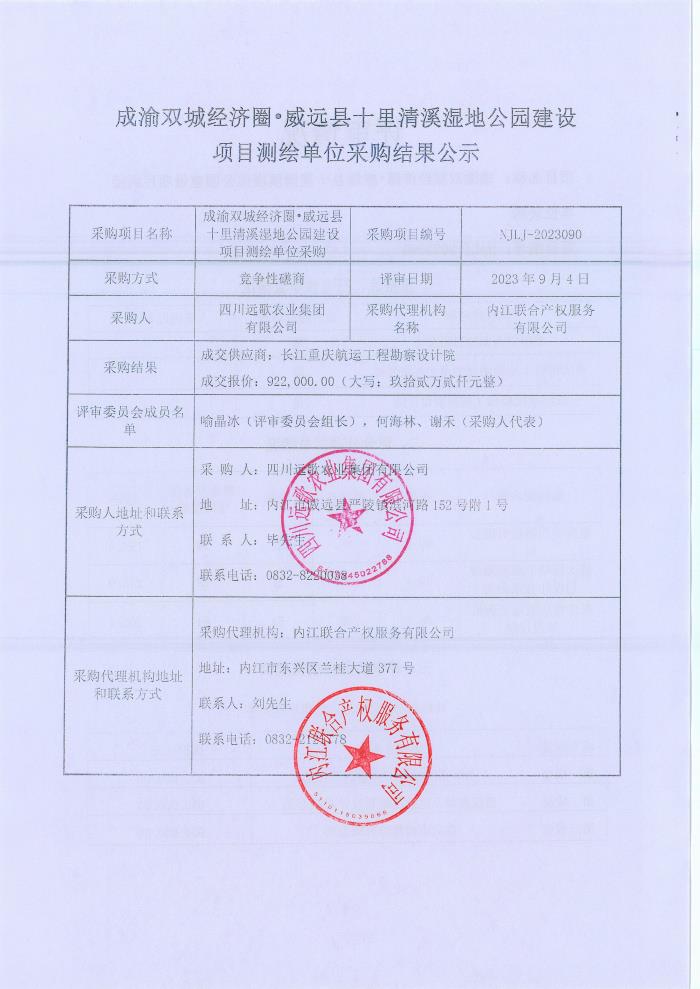 成渝雙城經(jīng)濟(jì)圈?威遠(yuǎn)縣十里清溪濕地公園建設(shè)項目測繪單位采購結(jié)果公示