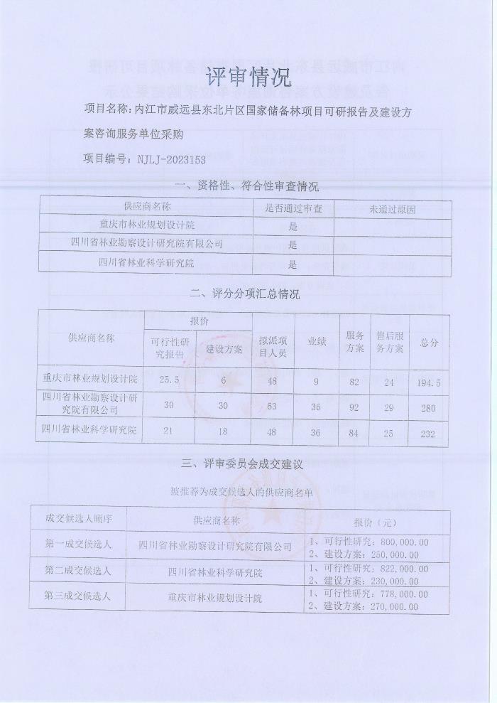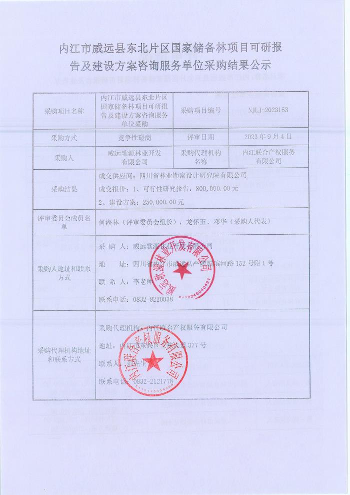 內(nèi)江市威遠縣東北片區(qū)國家儲備林項目可研報告及建設方案咨詢服務單位采購結(jié)果公示
