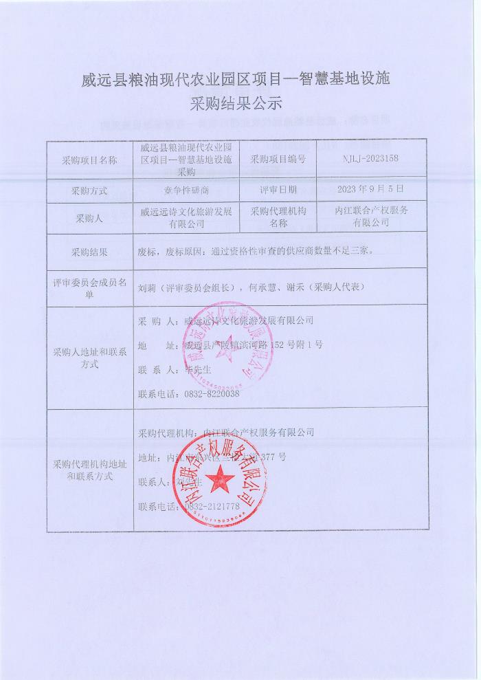 威遠(yuǎn)縣糧油現(xiàn)代農(nóng)業(yè)園區(qū)項目—智慧基地設(shè)施采購結(jié)果公示