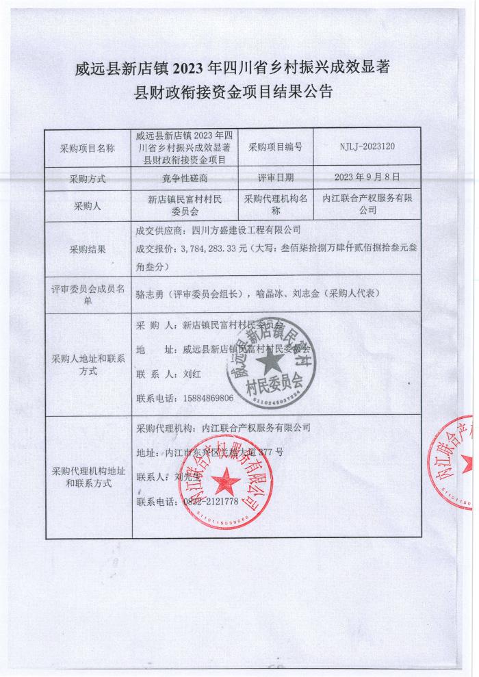 威遠縣新店鎮(zhèn)2023年四川省鄉(xiāng)村振興成效顯著縣財政銜接資金項目結(jié)果公告