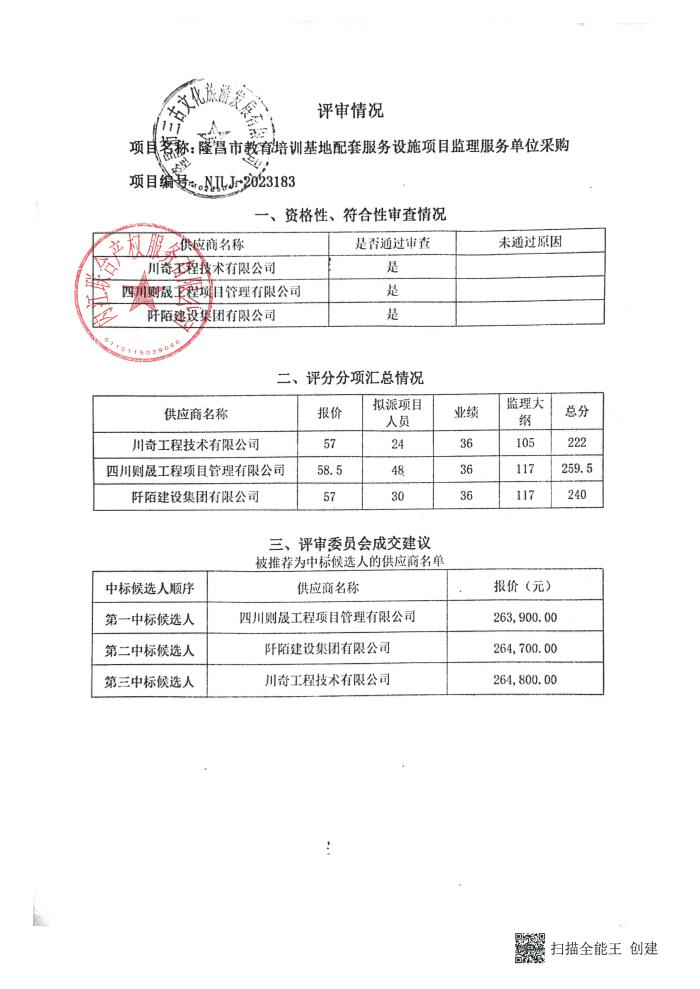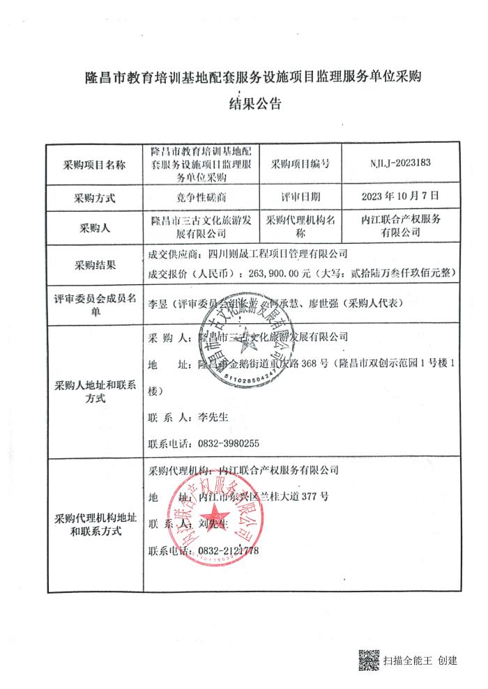 隆昌市教育培訓(xùn)基地配套服務(wù)設(shè)施項(xiàng)目監(jiān)理服務(wù)單位采購(gòu)結(jié)果公告