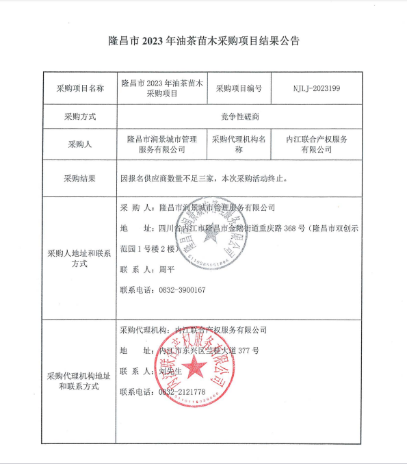 隆昌市2023年油茶苗木采購項目結(jié)果公告