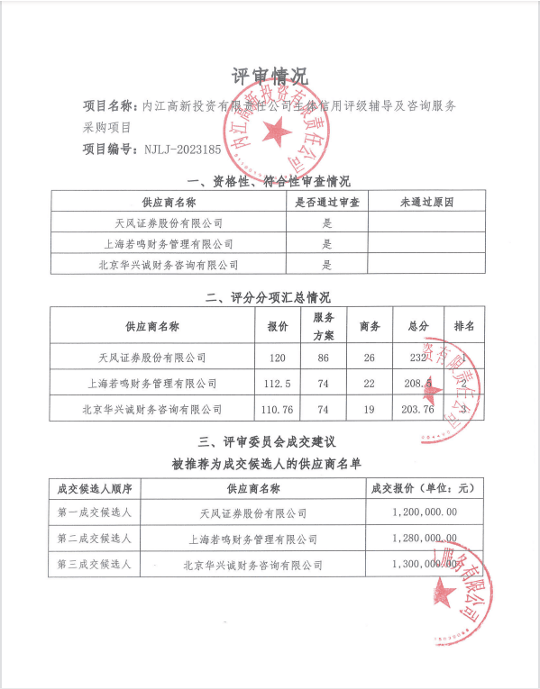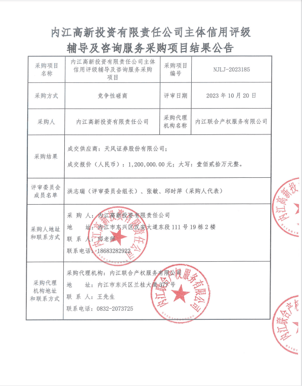 內(nèi)江高新投資有限責(zé)任公司主體信用評級輔導(dǎo)及咨詢服務(wù)采購項(xiàng)目結(jié)果公告