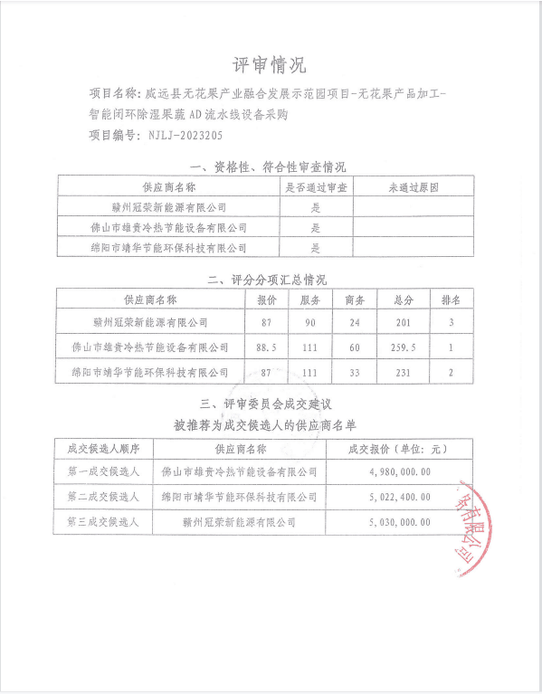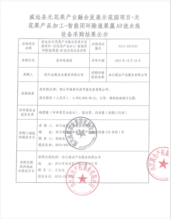 威遠(yuǎn)縣無花果產(chǎn)業(yè)融合發(fā)展示范園項目-無花果產(chǎn)品加工-智能閉環(huán)除濕果蔬AD流水線設(shè)備采購結(jié)果公示