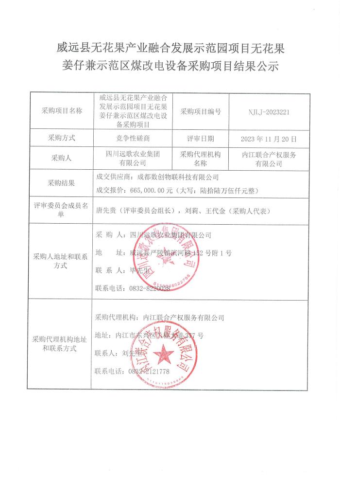 威遠(yuǎn)縣無花果產(chǎn)業(yè)融合發(fā)展示范園項(xiàng)目無花果姜仔兼示范區(qū)煤改電設(shè)備采購項(xiàng)目結(jié)果公示