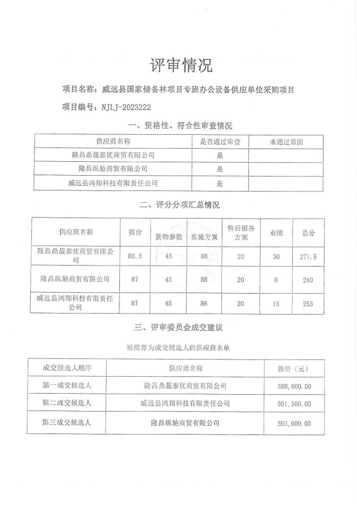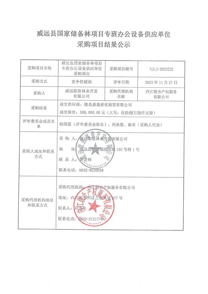 威遠(yuǎn)縣國家儲備林項目專班辦公設(shè)備供應(yīng)單位采購項目結(jié)果公示