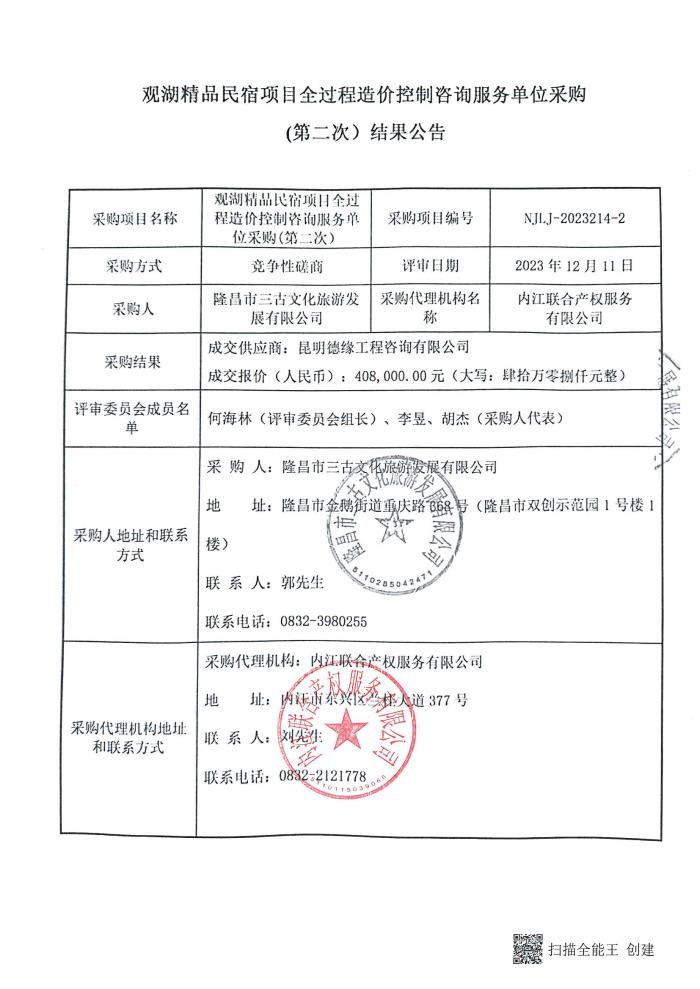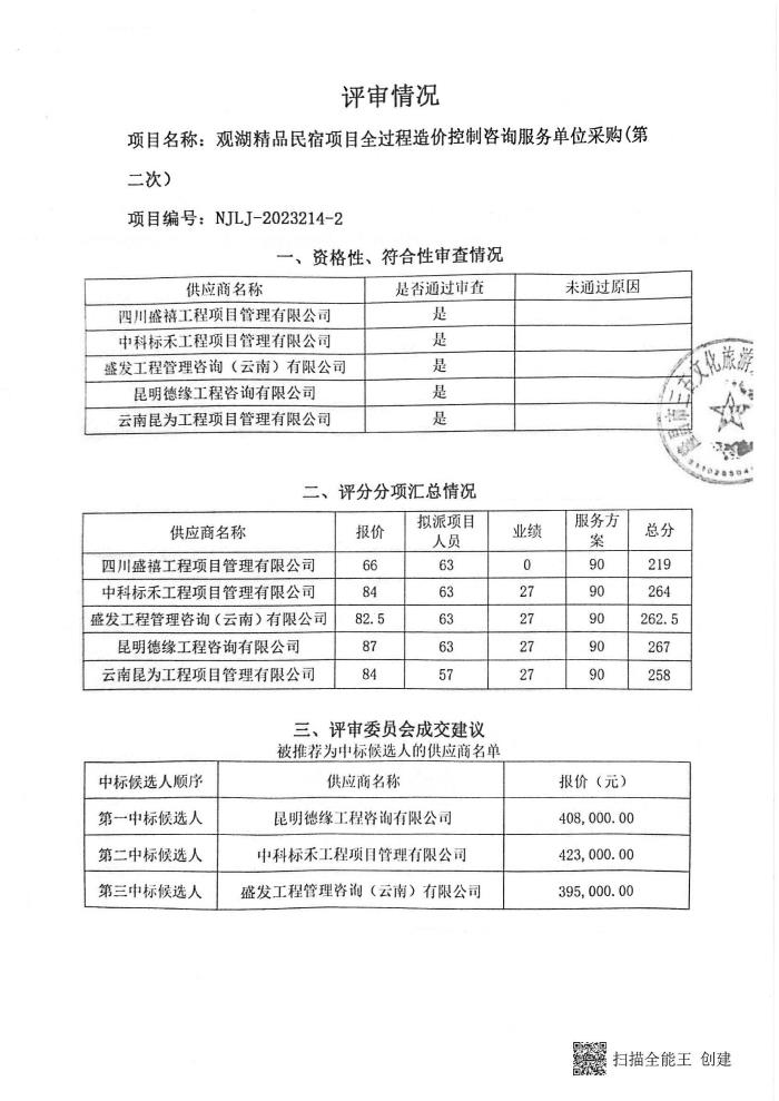 觀湖精品民宿項目全過程造價控制咨詢服務單位采購(第二次)結(jié)果公告