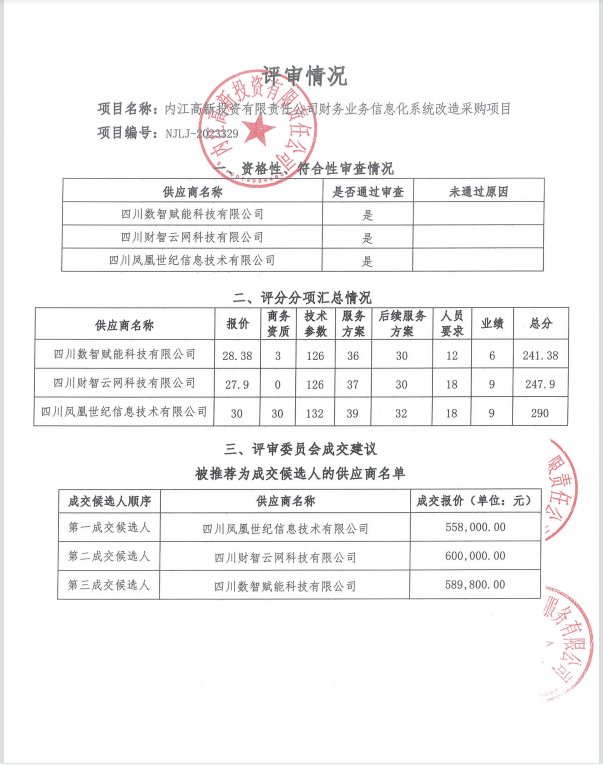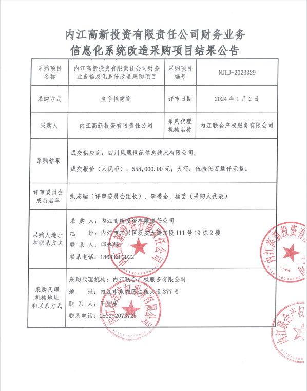 內(nèi)江高新投資有限責(zé)任公司財(cái)務(wù)業(yè)務(wù)信息化系統(tǒng)改造采購(gòu)項(xiàng)目結(jié)果公告