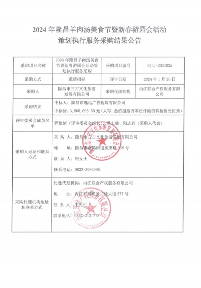 2024年隆昌羊肉湯美食節(jié)暨新春游園會(huì)活動(dòng)策劃執(zhí)行服務(wù)采購(gòu)結(jié)果公告